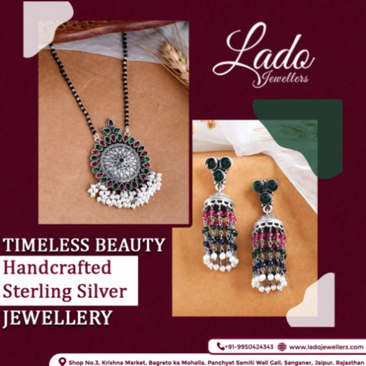 Discover the exquisite world of Lado Jewellers, your ultimate destination for Designer Silver Jewellery Online Jaipur. Known for our rich heritage and craftsmanship, we offer an extensive collection of Handmade Silver Jewellery Jaipur, meticulously crafted by skilled artisans who pour their heart and soul into every piece. Our silver jewellery epitomizes elegance and sophistication, making it a perfect choice for women who appreciate timeless beauty and contemporary design.