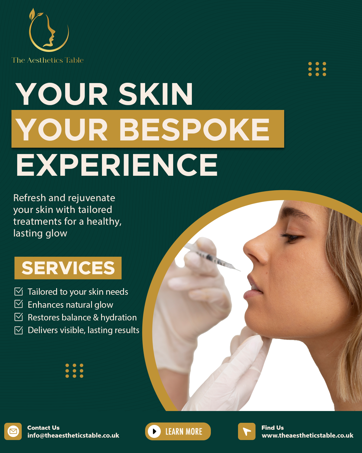 Welcome to The Aesthetics Table Liverpool’s trusted destination where beauty meets precision. We specialise in advanced aesthetic treatments including PROFHILO, Microneedling, Polynucleotides, and Anti-wrinkle solutions all tailored to enhance your natural features with subtle, safe, and stunning results. Our expert-led approach focuses on personalised skin rejuvenation, non-surgical aesthetic care, and treatment plans designed around your unique goals. With state-of-the-art techniques, a calming clinic environment, and attentive aftercare, we deliver visible improvements that boost confidence and long-term skin health. Discover your glow book your consultation today and step into your most confident self.
